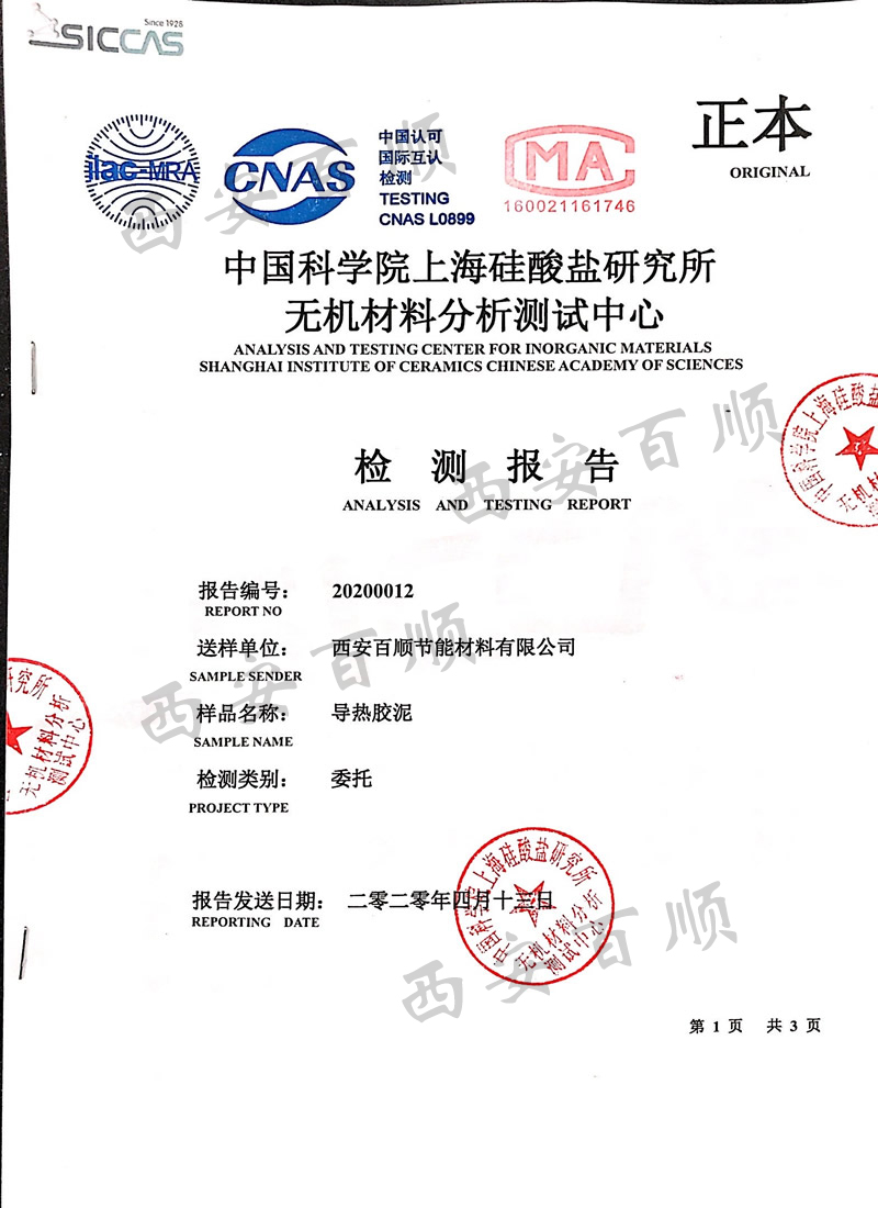 •        西安百順節能材料有限公司成立于1998年,二十五年來,我們專心、專注于導熱膠泥產品的研發、生產;企業通過ISO9001:2015質量管理體系認證,制定了Q/BS 001-2020《無機型導熱膠泥》企業標準,經過不斷的研發、優化,成功開發、生產、銷售了針對不同工藝、不同材質、方便施工的JM-250、JM-600、JM-800、JM-1000系列導熱膠泥,年生產能力2000噸;